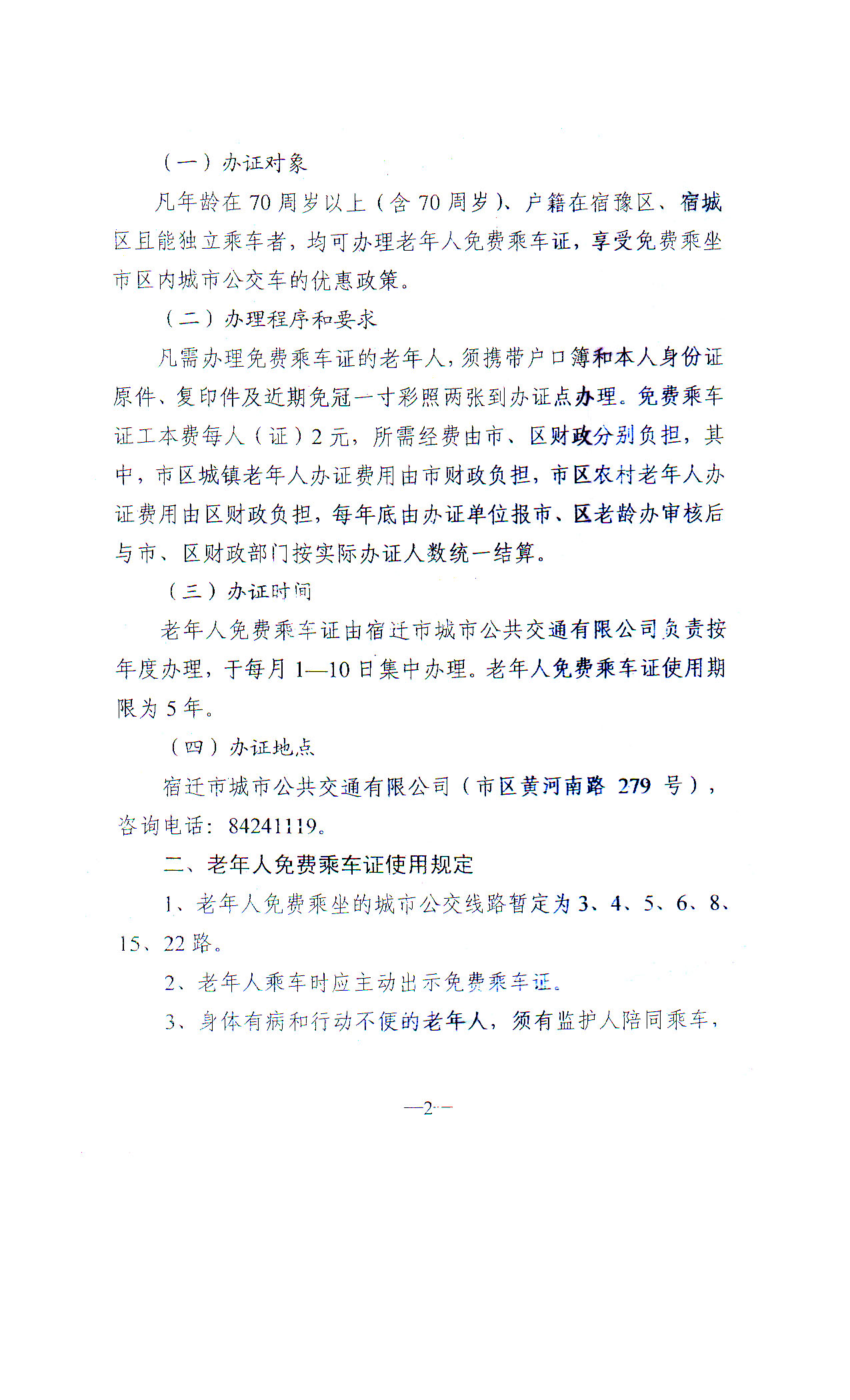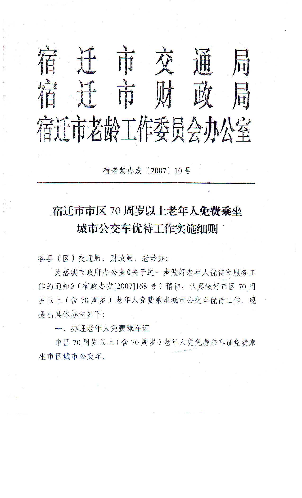 宿遷市70周歲老年人優(yōu)惠乘公交規(guī)定